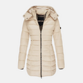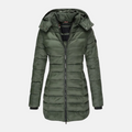 Introducing the Nordisk-Flair `Women’s Puffer Coat – Slim Fit – Quilted Insulated – Mid-Length with Hood and Cuffs`. Stay warm and stylish this season in this chic, quilted puffer coat. Designed for a flattering slim fit and featuring insulation, a hood, and secure cuffs, it's the perfect blend of fashion and function.