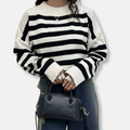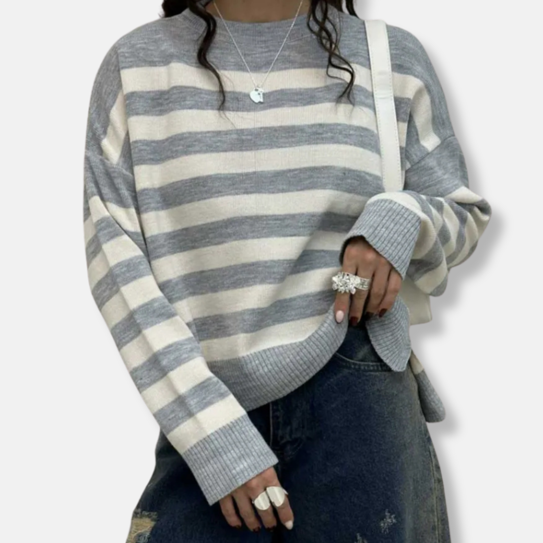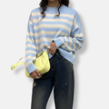 Women’s Pullover Sweatshirt – Loose Fit Knit – Striped Crew Neck – Ribbed Hem by Nordisk-Flair offers ultimate comfort & style. This cozy knit features a relaxed fit, classic stripes, a flattering crew neck, and a ribbed hem for a chic, casual look. Perfect for everyday wear!