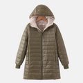 Stay cozy and chic in this Women’s Quilted Coat – Mid-Length – Hooded – Fleece Lined – Ribbed Cuffs – Insulated from Nordisk-Flair. This insulated coat offers warmth with its quilted design, fleece lining, and hood. Ribbed cuffs ensure a snug fit. Perfect for colder weather!