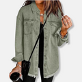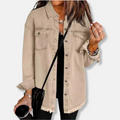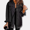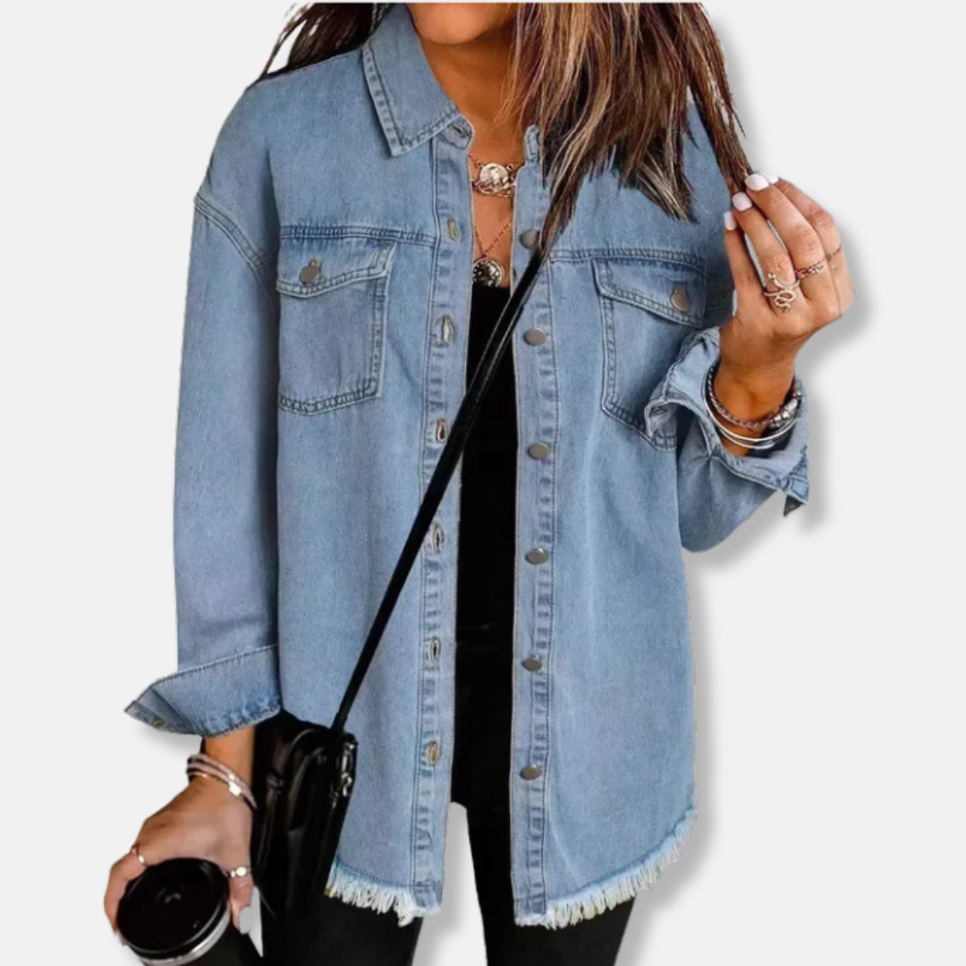 Embrace effortless elegance with our Women’s Denim Shacket. Its oversized fit and raw edge hem offer a modern yet timeless silhouette, perfect for sophisticated layering and versatile styling, ensuring a flattering look for any casual occasion.