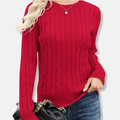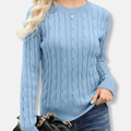 Embrace timeless elegance with our Women’s Fine Gauge Knit Crew Neck Sweater. This long-sleeve, cable knit pattern piece offers a relaxed, hip-length silhouette that flatters and provides versatile styling options for any discerning wardrobe.
