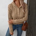 Cable Knit Wool Blend Henley Sweater