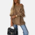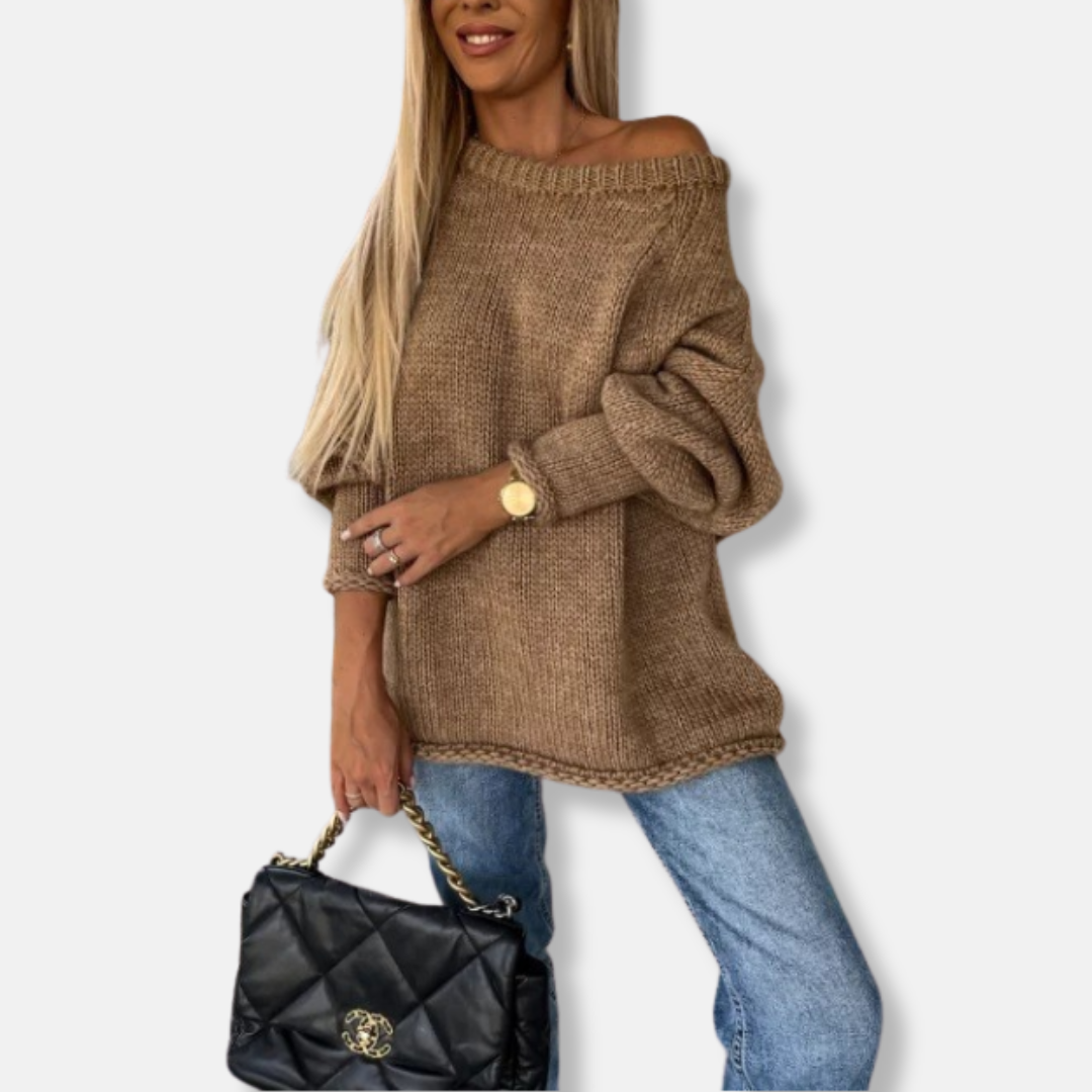 Embrace effortless elegance with our Women’s Chunky Knit Oversized Off-Shoulder Sweatshirt. Designed for a relaxed yet refined silhouette, its luxurious balloon sleeves and off-shoulder neckline offer a flattering drape, perfect for sophisticated casual styling.