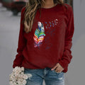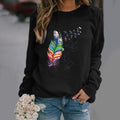 Feather Print Relaxed Fit Crew Neck Sweatshirt
