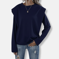 Nordisk-Flair's Women’s Sweatshirt – Relaxed Fit – Padded Shoulders – Crew Neck – Soft Knit Fabric offers ultimate comfort and style. This soft knit crew neck sweatshirt with relaxed fit and subtle padded shoulders provides a modern, chic silhouette. Enjoy effortless elegance with this wardrobe staple.