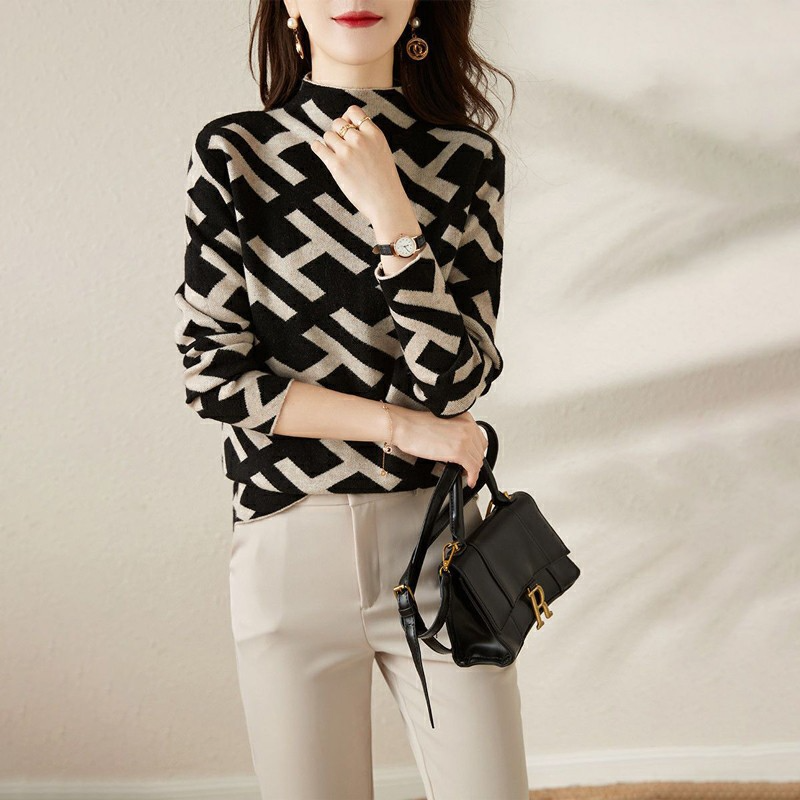 Jacquard Mock Neck Wool Blend Sweatshirt