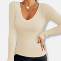 Elevate your everyday with our Women’s Ribbed Knit Top. Designed for a flattering slim fit, its deep V-neck and long sleeves offer timeless elegance and versatile styling, perfect for sophisticated women seeking quality and comfort.