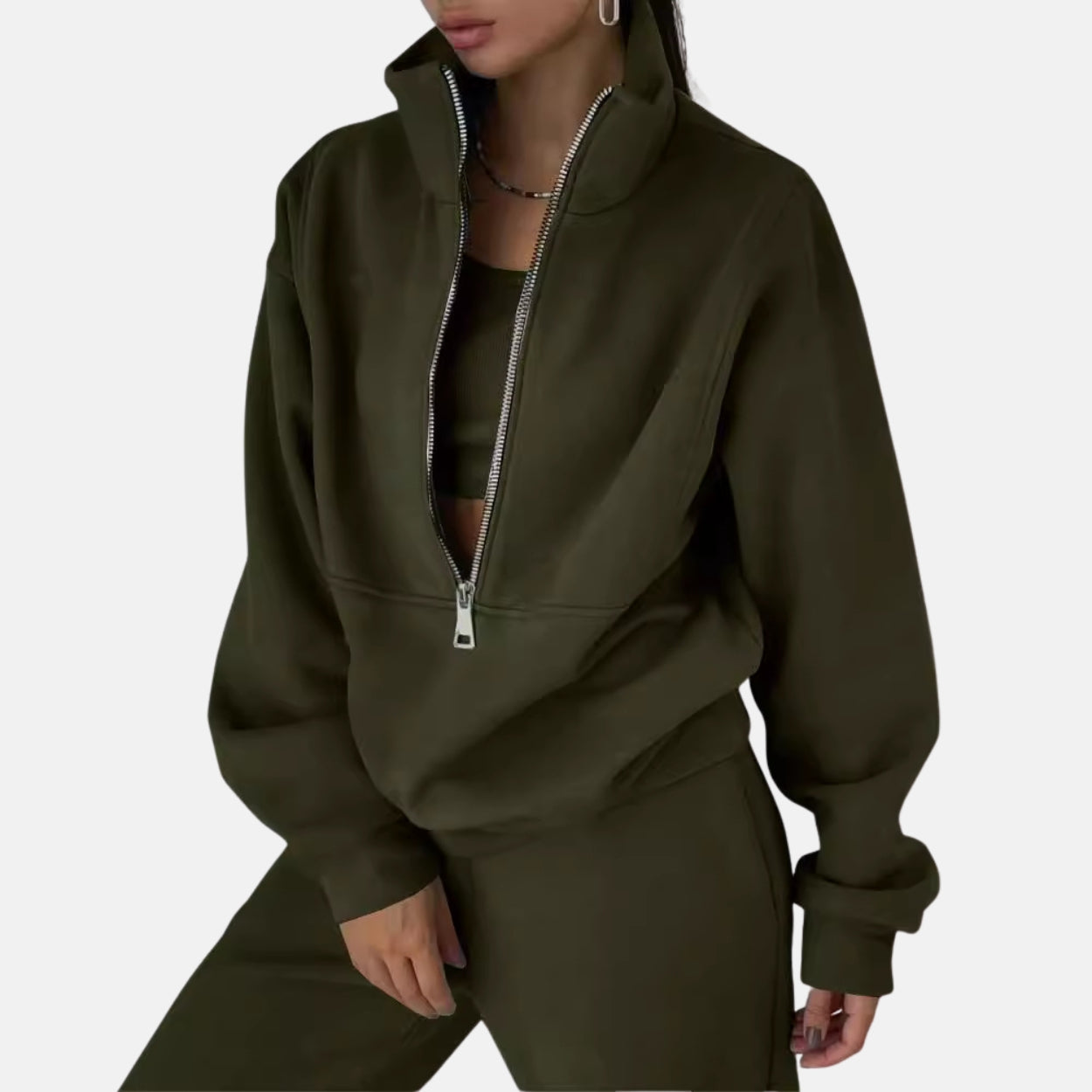 Two-Piece High Collar Relaxed Fit Tracksuit Set
