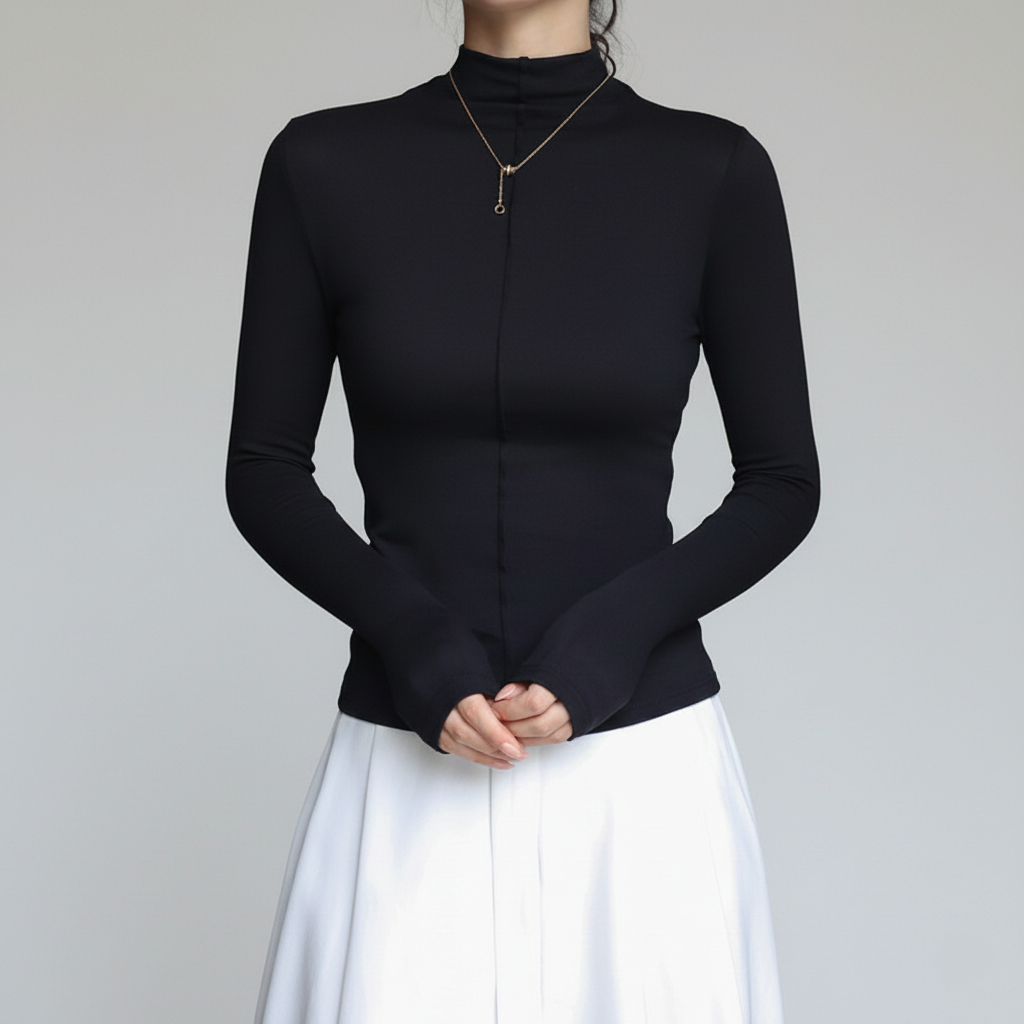 Experience effortless style with the `Women’s Turtleneck Top – Slim Fit – Stretch Fabric – Long Sleeve – Minimalist Design` from Nordisk-Flair. This versatile top offers a flattering silhouette, comfortable stretch, and timeless appeal.