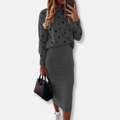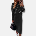 Shine bright in our Women’s Two-Piece Set – Knit High Neck Top with Star Pattern – Slim Fit Midi Skirt by Nordisk-Flair. This stylish knit set offers a flattering silhouette and a touch of celestial charm. Perfect for effortless elegance!