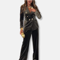 Velvet Tailored Wide-Leg Two-Piece Set