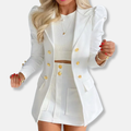 Women’s Two-Piece Suit Set - Tailored Longline Blazer with Puff Shoulders - Printed Mini Skort