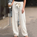 Tie-Belt Linen Blend Wide-Leg Trousers