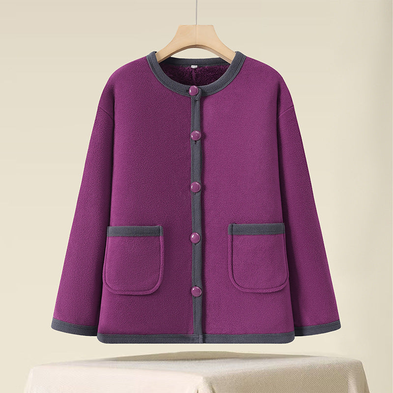 This polar fleece jacket offers the perfect blend of comfort and casual elegance. Its soft fleece lining keeps you warm and snug, while the button-down front and contrasting trim add a stylish touch. With two functional patch pockets, it’s designed for both practicality and fashion—ideal for layering during the cooler seasons.